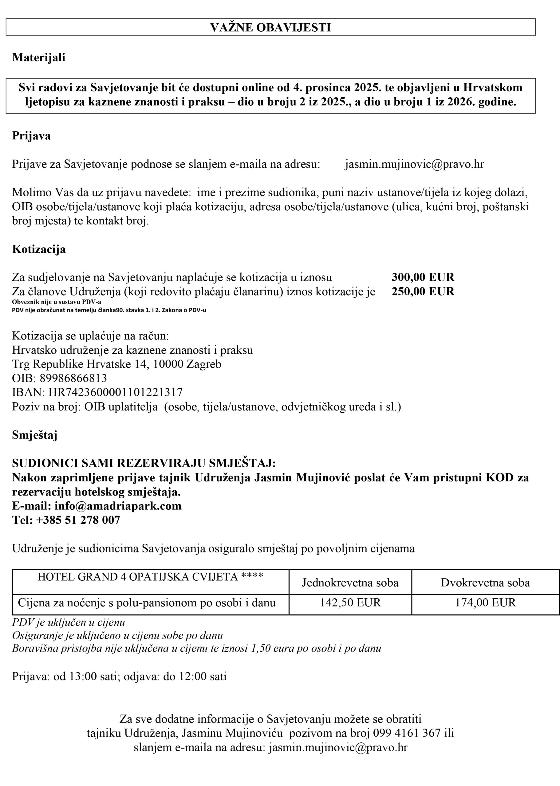 Home/Savjetovanja/XXXVIII. redovno savjetovanje Hrvatskog udruženja za kaznene znanosti i praksu održati u Opatiji, Amadria Park Grand Hotelu 4 opatijska cvijeta od 4. – 6. prosinca 2025. Savjetovanja XXXVIII. redovno savjetovanje Hrvatskog udruženja za kaznene znanosti i praksu održati u Opatiji, Amadria Park Grand Hotelu 4 opatijska cvijeta od 4. – 6. prosinca 2025. hukzp Send an email 2 listopada, 20250 609 Less than a minute hukzp Send an email 2 listopada, 20250 609 Less than a minute